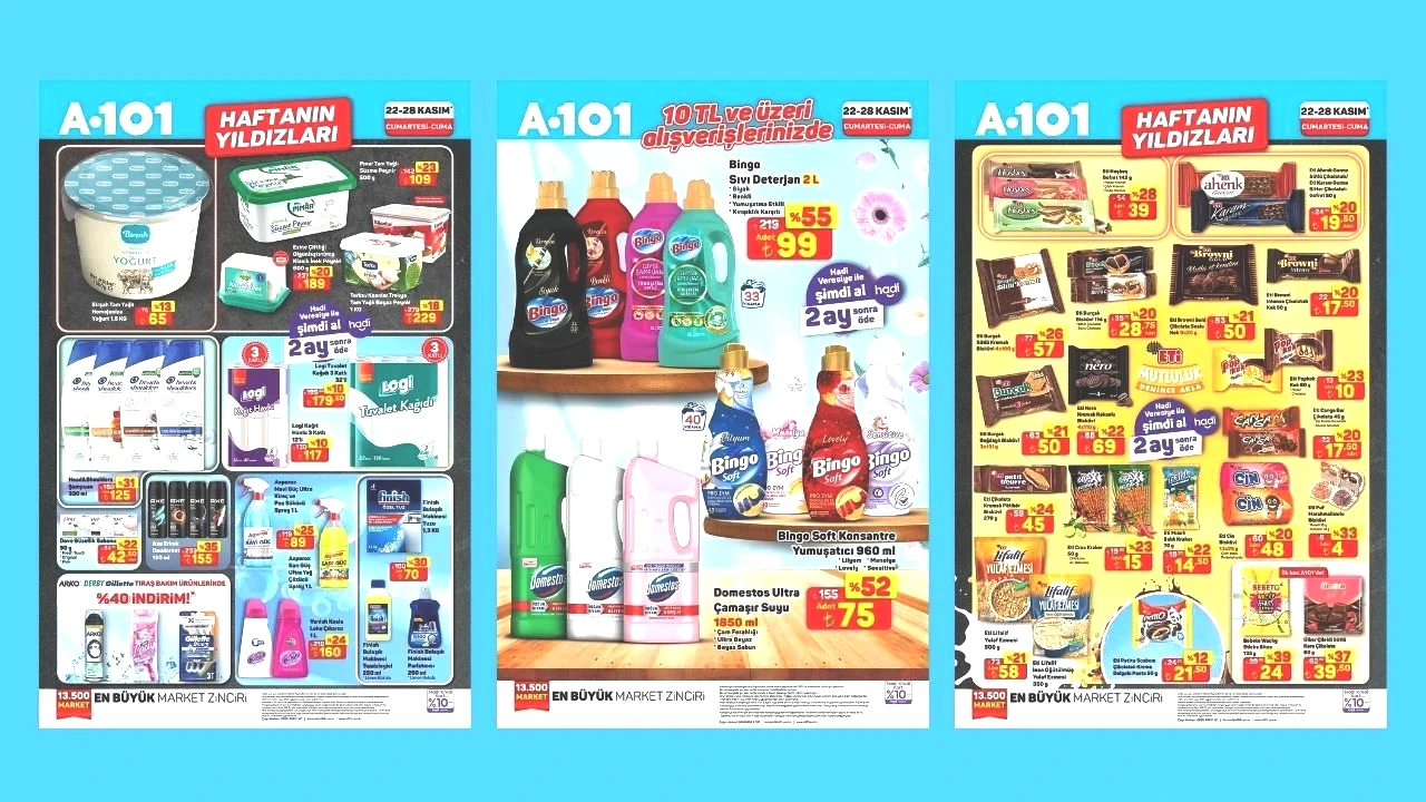 Stok Durumu ve Satın Alma Seçenekleri A101 tarafından yapılan açıklamada, ürünlerin stok durumunun mağaza bazında değişkenlik gösterebileceği ifade edildi. Mağazada bulunmayan ürünlerin, A101 Kapıda uygulaması, A101 Ekstra veya en yakın diğer şubelerden temin edilebileceği bilgisi verildi. Ayrıca, kampanyaya özel olarak bazı ürünlerde "şimdi al, sonra öde" seçeneği de sunulmaktadır. Kampanyanın 22-28 Kasım tarihleri arasında geçerli olduğu hatırlatılmaktadır.