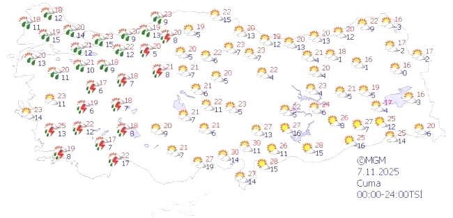 7 Kasım Cuma: İstanbul ve Ankara gibi pek çok şehirde kuvvetli sağanak yağışların etkili olacağı tahmin ediliyor.
