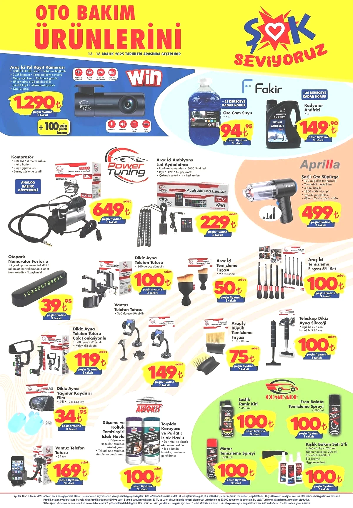 Aynı tarihlerde oto bakım ürünlerinde de geniş bir ürün yelpazesi ile etkileyici indirimler sunulmakta. Kış hazırlıkları için gerekli antifrizlerden, kompresörlerden, telefon tutuculardan lastik bakım ürünlerine kadar bir dizi seçenek kampanya kapsamına alınmış durumda.